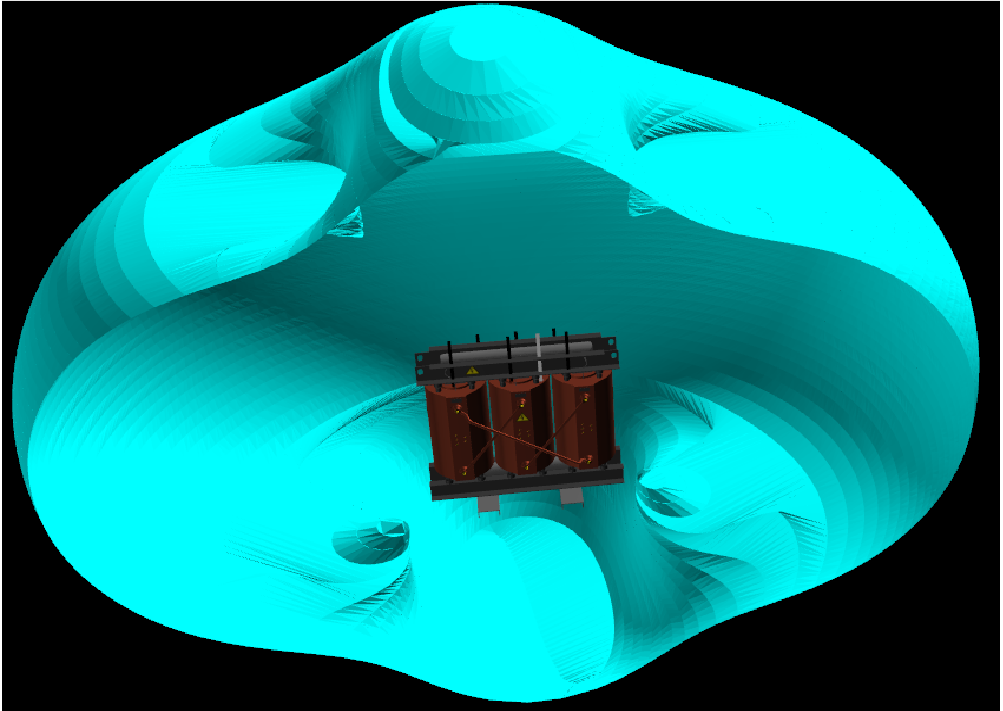 The simulator calculates the cumulative magnetic field produced by all configured components and visualizes the magnetic field distribution using contour (iso) lines. Both the iso lines and all electromagnetic components can also be viewed in three-dimensional mode, giving a detailed and realistic representation of the electromagnetic environment.